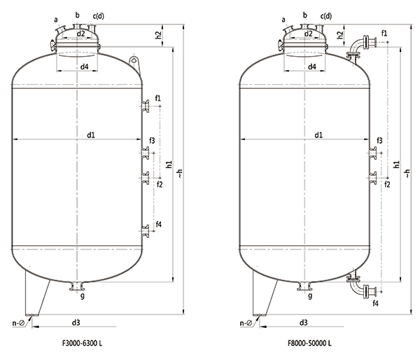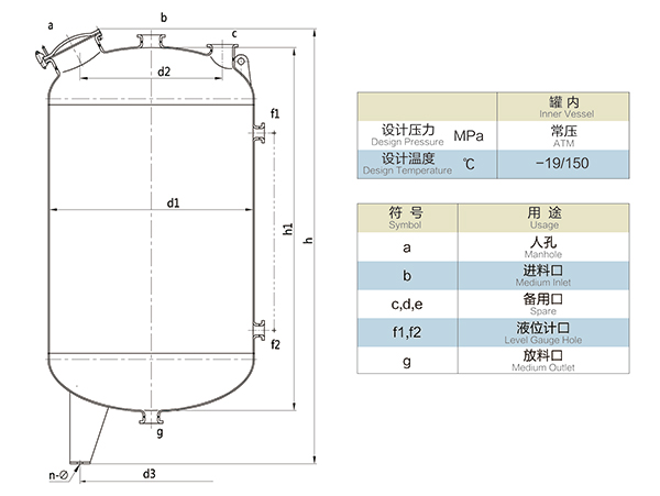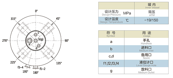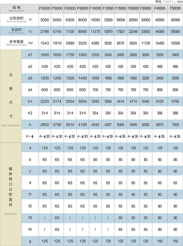 F3000L-F50000L閉式搪玻璃貯罐(閉式搪玻璃儲(chǔ)罐)設(shè)計(jì)圖紙及參數(shù)如下所示: