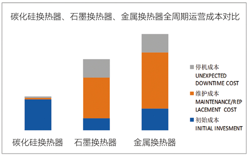 購買、保養(yǎng)維護、意外停機等綜合成本優(yōu)于石墨及其它金屬換熱器。