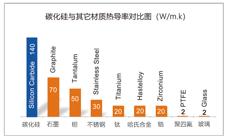碳化硅換熱器熱導(dǎo)效率遠遠高于其它傳統(tǒng)耐腐蝕材料的換熱器;