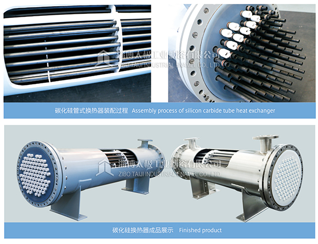 太極碳化硅換熱器具有極強的耐腐蝕性、強抗氧化性和強耐熱沖擊性,可耐任何強堿、高濃硫酸、硝酸、磷酸、混合酸以及氫氟酸等。